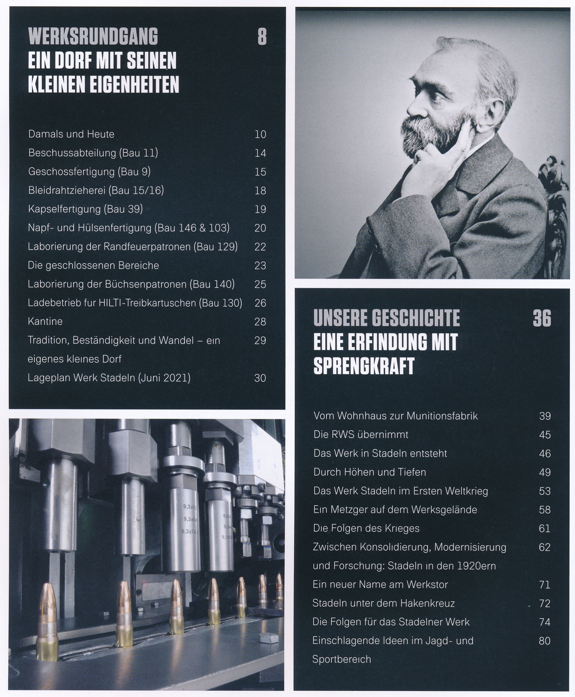 Es gliedert sich in sechs Hauptkapitel und umfangreiche Anhänge, wobei nicht nur die eigentliche Munitionsfertigung, sondern auch u.a. auch der Alltag der Belegschaft im Werk, der Einsatz von Zwangsarbeitern und die Nachkriegs-Nutzung des Areals des Märkischen Walzwerkes behandelt werden. Exemplare können zum o.a. Preis für Deutschland bei der Geschäftsstelle oder für das Ausland über kontor@waffenbuecher.com bezogen werden.