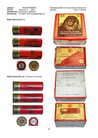 Format A4, hart gebunden, 416 Seiten, mehrere tausend meist farbige Munitionsfotos, Faksimiles von Originaldokumenten sowie historischen Fotos. Eigenverlag der Patronensammlervereinigung e.V., Wiesbaden 2014. Preis € 60,--